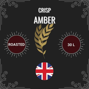 Crisp Amber malt is a kilned specialty malt. It has a strong biscuity, toasted grain flavor and imparts amber and copper hues. Amber malt is traditionally used in medium or dark English ales, especially brown ale, mild ale, and old ale. The dry taste of Amber malt is an excellent compliment to bitter hoppiness, making it a nice addition to IPAs.