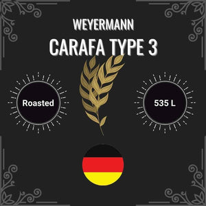 Weyermann® CARAFA® Type 3 is a dark-roasted specialty malt made from high-quality spring barley. It's carefully roasted to add an espresso-like bouquet, coffee and chocolate flavors, and a mild but noticeable roasted aftertaste. It produces opaque beer with brown/black color. Weyermann® CARAFA® Type 3 is similar to 'Chocolate' or 'Black' style roasted malts, and can be used in any dark lager or ale. CARAFA® Type 3 has become particularly popular in Black IPA/Cascadian Dark Ale recipes as a major contributor to the color and malt flavor.