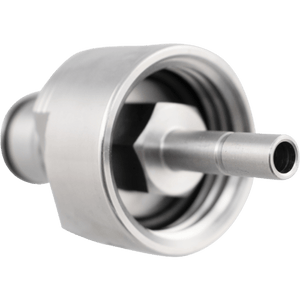 This stainless steel ball lock cap features soda bottle threads, allowing you to convert any plastic soda bottle into a convenient growler. The cap is compatible with both ball lock gas and liquid disconnects, so you can charge the PET bottle before you leave the house and dispense it on the go. Attach 3/16" or 1/4" ID tubing to the barb to serve as your dip tube and you're all set!
