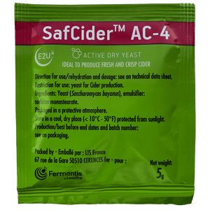 SafCider AC-4: The best cider yeast for an intensely fresh aromatic profile (apple, floral) with a crisp mouthfeel enhancing cider structure.