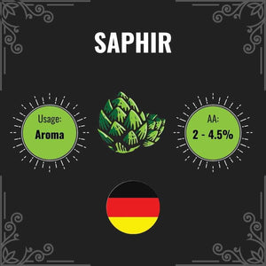 Usage: Aroma. As a higher-yielding, more disease-resistant alternative to Hallertau Mittelfrüh, Saphir can be used in many of the same formulations: Belgian ales, Weissbiers, farmhouse ales, as well as traditional continental lagers.