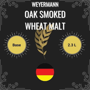 Part of Weyermann's line of Terrior malts, Oak-Smoked Wheat malt is specifically designed for traditional northeastern European wheat ales. Its fine oak smoke aroma and taste are thus most suited to Grodziskie (Grätzer beer) and similar styles. But the oak smoked flavor is an interesting substitute for cherry, beech, or peat smoked malts in any smoked beer, or an interesting addition to any wheat beer or ale.